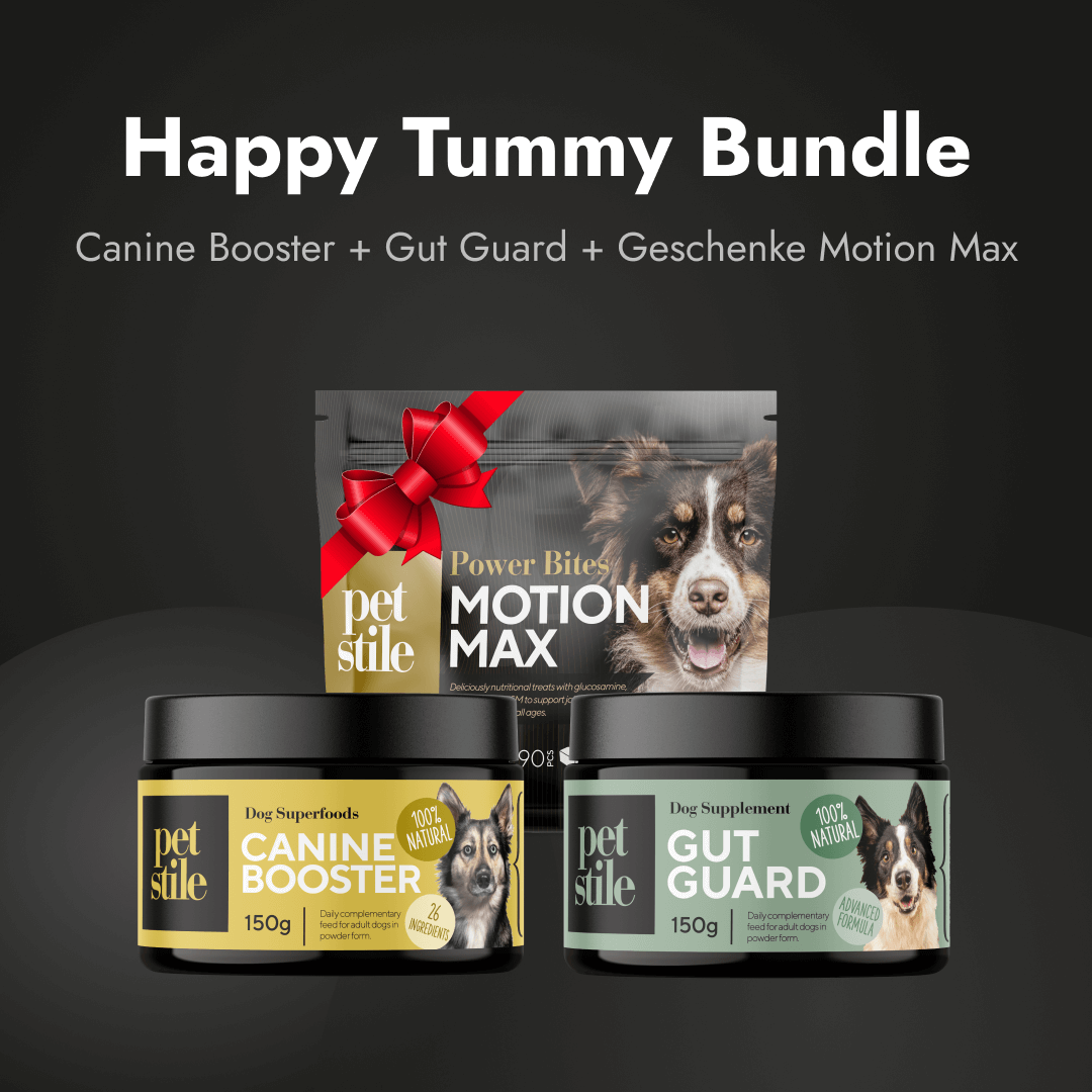 Verbessern Sie die Gesundheit Ihres Hundes mit dem Happy Tummy Paket – einer wirkungsvollen Kombination aus Canine Booster und Gut Guard, die die Verdauung fördern, das Immunsystem stärken und das allgemeine Wohlbefinden unterstützen.